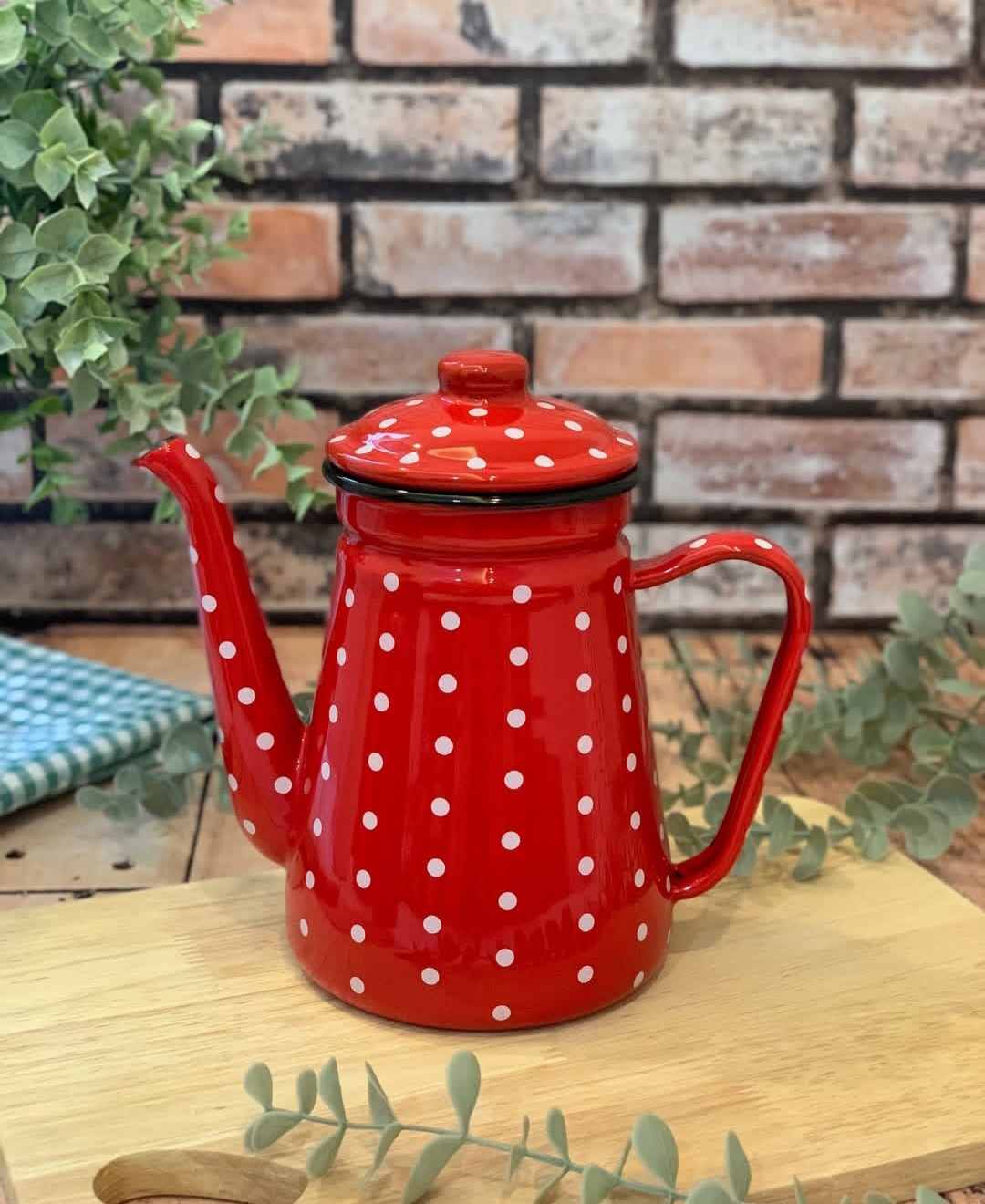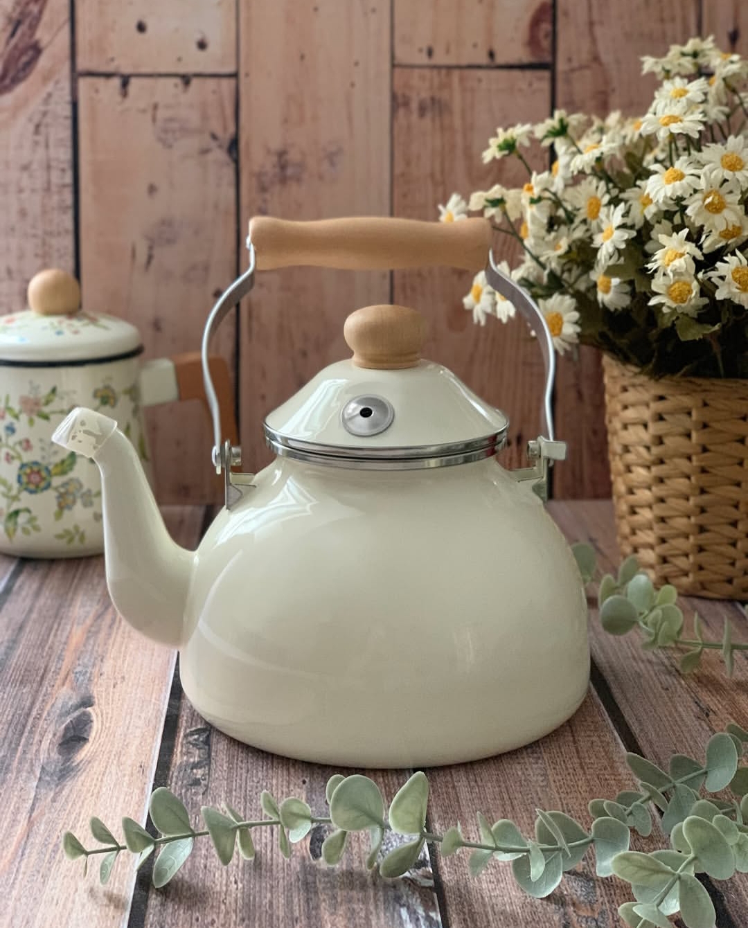 قوری لعابی طرح گلدار دسته چوبی ۱.۲ لیتری
